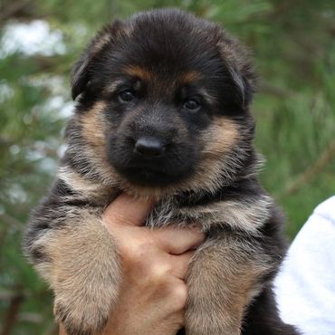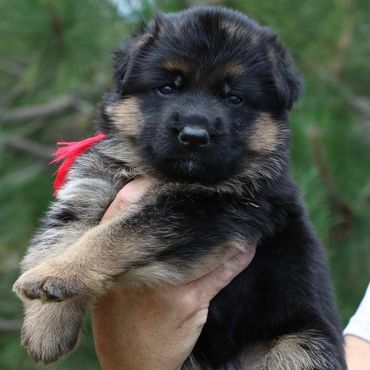 This is Boston's first litter born in the USA. This will be Gucci’s final litter. We expect lovely stock and long coat puppies from this pairing! 🖤❤️