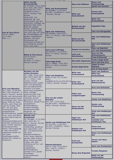 Lion di Terra Scura IGP2 Kkl, VA2 (Austria), 10x SG1 (Germany), V2 (Italian Sieger Show), 4x SG1 (Italy)